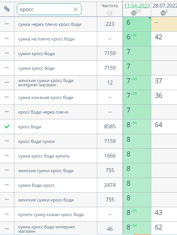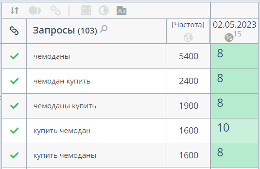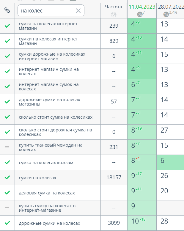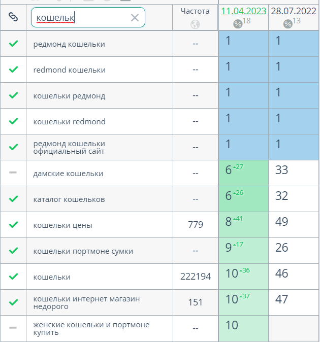 Данная семантика также поможет отследить динамику по сайту на первом этапе.