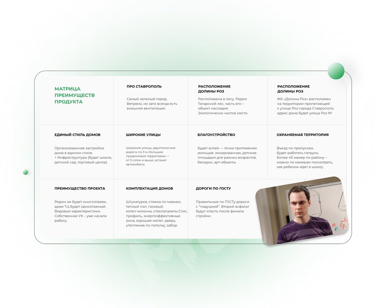 Также в результате установочной планёрки с клиентом составили матрицу преимуществ продукта (простите, зануды вошли в чат).