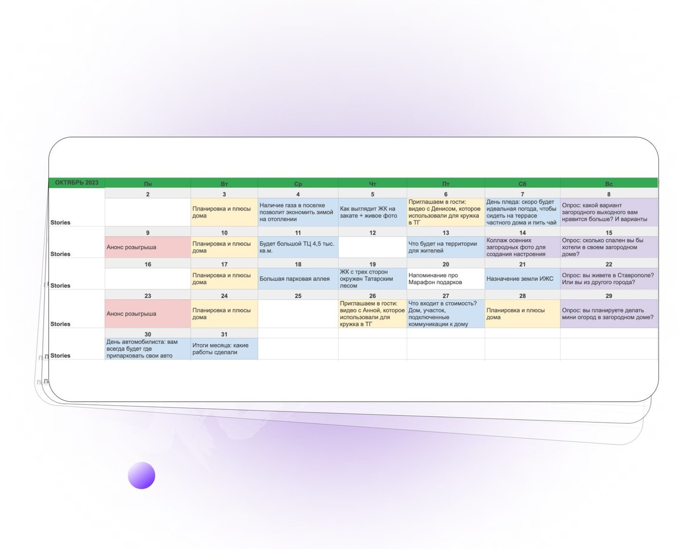 Контент-план состоит из 3 блоков: посты, сторис, кастом-посты для телеграм-канала. Последние необходимы, чтобы придать дополнительную ценность каналу и мотивировать пользователей туда заходить.