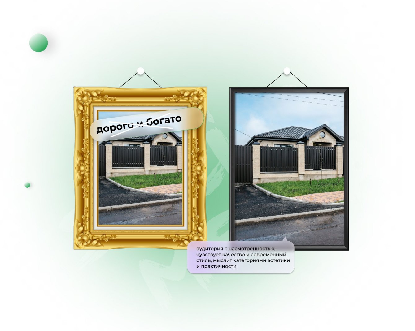 Важно было подчеркнуть качество для тех, кто выбирает для себя жильё с точки зрения практичности и ценит сопутствующие выгоды, а именно: единый стиль застройки, охраняемую территорию, просторные придомовые территории и широкие асфальтированные дороги, всю инфраструктуру квартала, но при этом не уйти в высокую элитарность, которая бы отпугнула часть целевой аудитории.