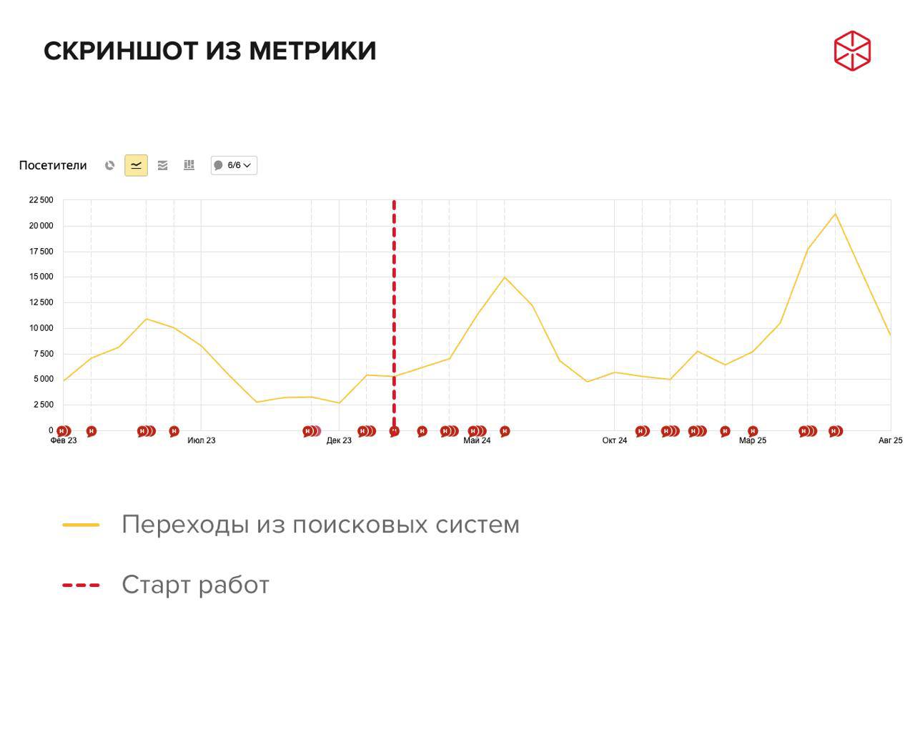 Так как для родителей при выборе лагеря критичны доверие и безопасность, мы обновили раздел «Отзывы», вернули его к индексации и добавили реальные комментарии. Дополнительно улучшили страницу «Контакты» и карточку компании в Яндекс.Бизнес, чтобы повысить прозрачность и доверие.