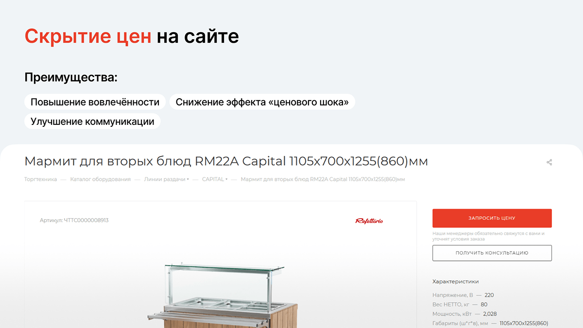 Убрали цены с сайта и заменили их на кнопку «Запросить цену»