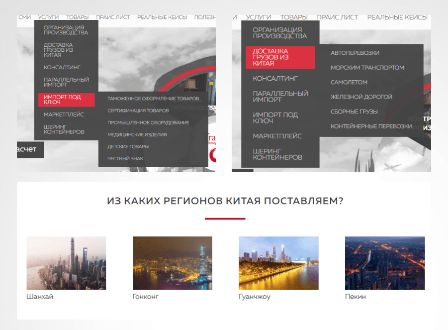 На примере хабовой страницы «Доставка грузов из Китая» мы добавили: