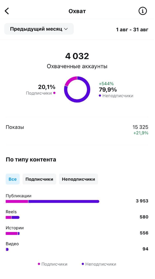 3. Внедрены форматы Reels, постов-каруселей, которые помогают увеличивать охват.