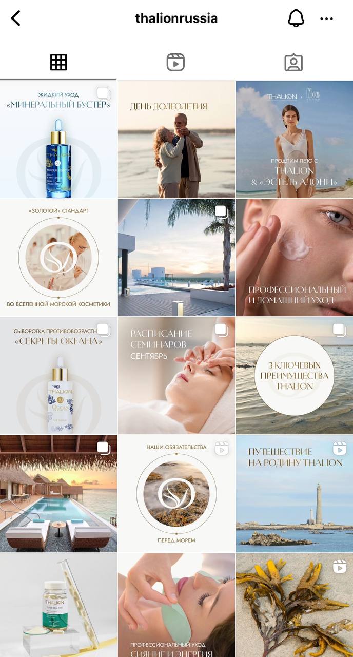 2. Разработан рубрикатор. Помимо публикаций о продуктах и новинках, для повышения знания об уникальных составах продукта внедрена рубрика МореИнгредиентов. Для создания эмоциональной связи и укрепления ассоциаций с родиной бренда — Францией и уникальным морем Ируаз, используем контент, связанный с морской тематикой, видео из Бретани, а также рассказываем историю бренда. А укрепить репутацию помогает рубрика, в которой мы рассказываем про партнеров THALION по всему миру.
