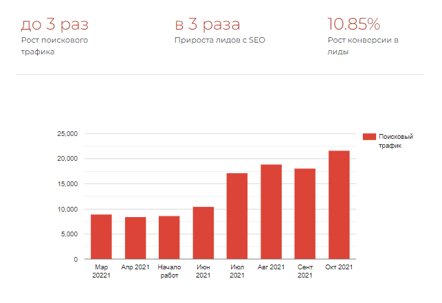 На момент работы в мае 2021 года трафик составлял 8 659 переходов, к октябрю 2021 года он вырос до 20 000 переходов