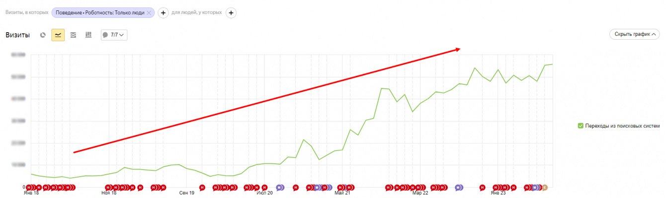 Планомерное развитие сайта и постоянная работа по оптимизации принесла хорошие результаты. Тесная работа и правильно настроенная коммуникация между клиентом и командой - залог успеха.