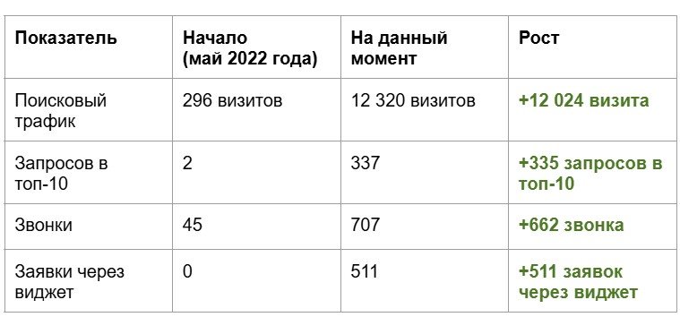 Фактическое отсутствие видимости в поисковой выдаче: на начало продвижения сайт находился за пределами первой десятки выдач Яндекс и Google.