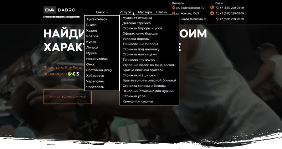 На старте работ с сайтом сети барбершопов DABRO столкнулись с серьёзными проблемами: