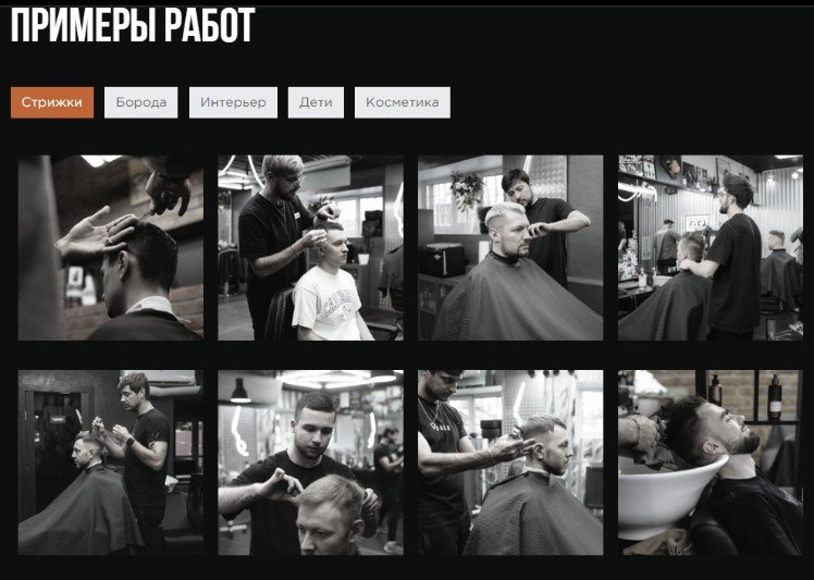 - Кроме того, мы добавили специальные секции с отзывами реальных клиентов и портфолио готовых работ, демонстрирующих профессионализм мастеров барбершопа.