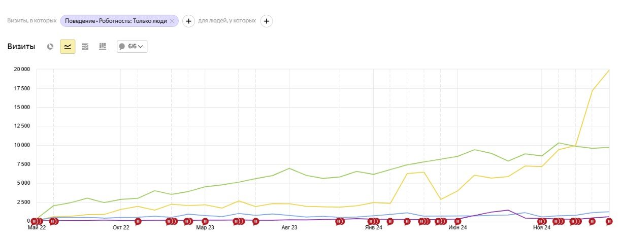 Минимальный органический трафик: ежемесячный приток посетителей из поисковых систем составлял около 300 визитов.