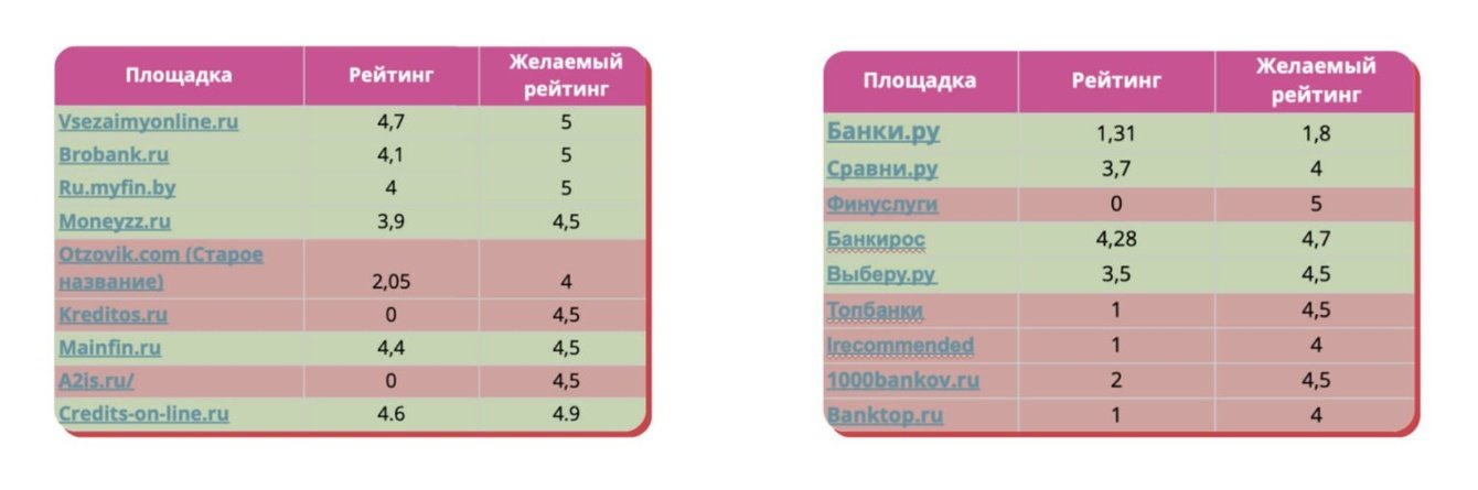 - Банк закупает большие объемы трафика на , при этом на площадке были в основном негативные отзывы, а рейтинг был очень низкий. В связи с чем заявки приходили от аудитории низкого качества