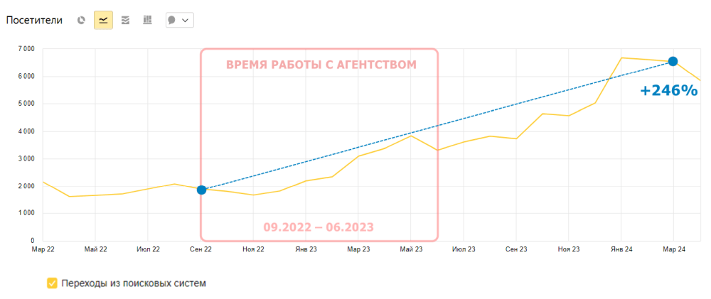Посетители из поисковых систем по данным Я.Метрики выросли на 246%: