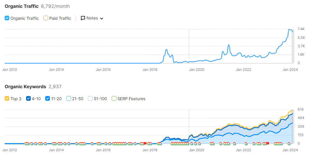 Органический трафик и ранжирование по ключам по сервису semrush.com