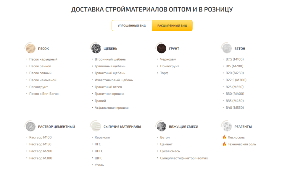— 3 881 запрос — товарные и сервисные (щебень, песок, доставка, аренда самосвалов и т. д.);