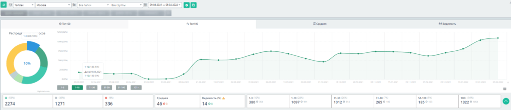 После обновления сайта число коммерческих запросов в ТОП-10 Яндекса выросло в 6 раз — со 186 до 1097.