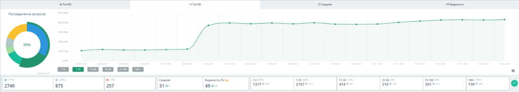 После достижения первых целей работа не остановилась. Мы продолжаем регулярно обновлять контент, расширять семантику и проводить технический аудит, чтобы поддерживать темп роста. Благодаря этому сайт остаётся на высоких позициях и продолжает приносить заявки без дополнительного рекламного бюджета.
