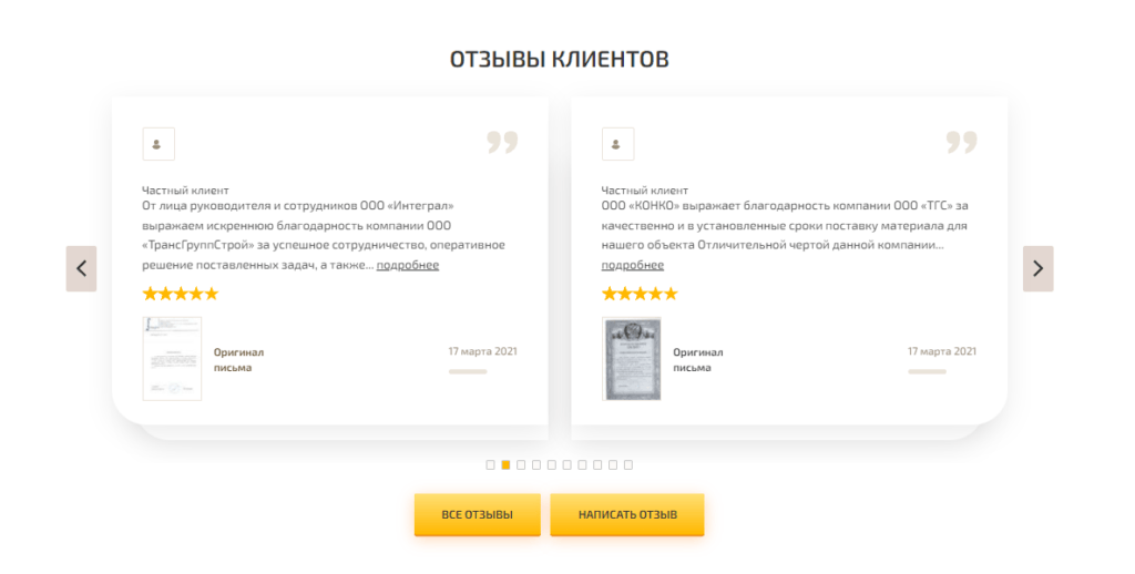 Одни тексты — хорошо, но реальные доказательства работают сильнее. Поэтому мы разместили не только отзывы, но и сканы благодарственных писем от партнеров и клиентов.