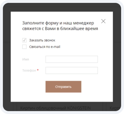 - Для удобства пользователей при нажатии кнопки “Заказать” можно выбрать удобный способ связи: