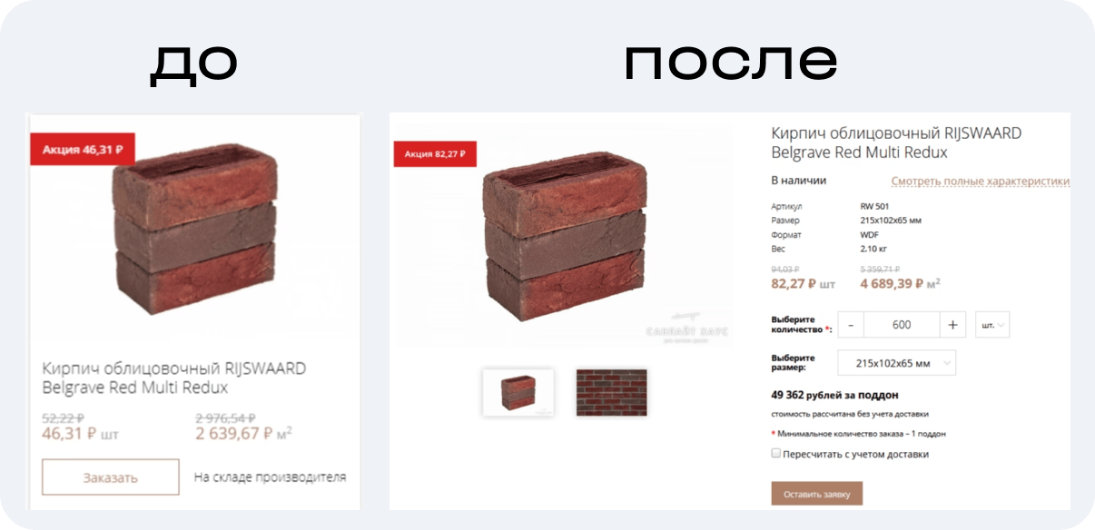 - Разработали более информативный макет карточек товаров: