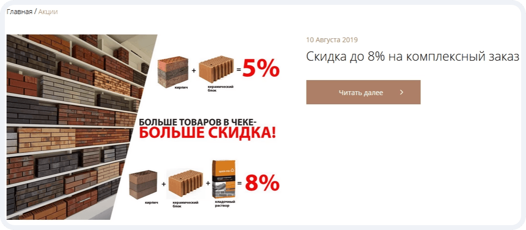 - Создали отдельный блок “Акция” с реализацией автоматической подгрузки акционных товаров на эту страницу: