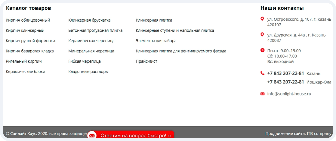 - Упорядочили информацию в футере, добавив контактную информацию: