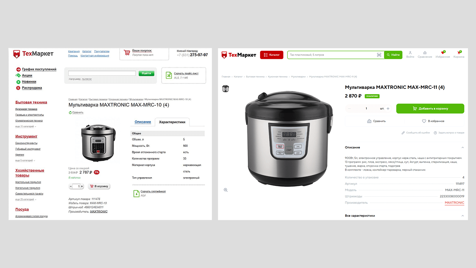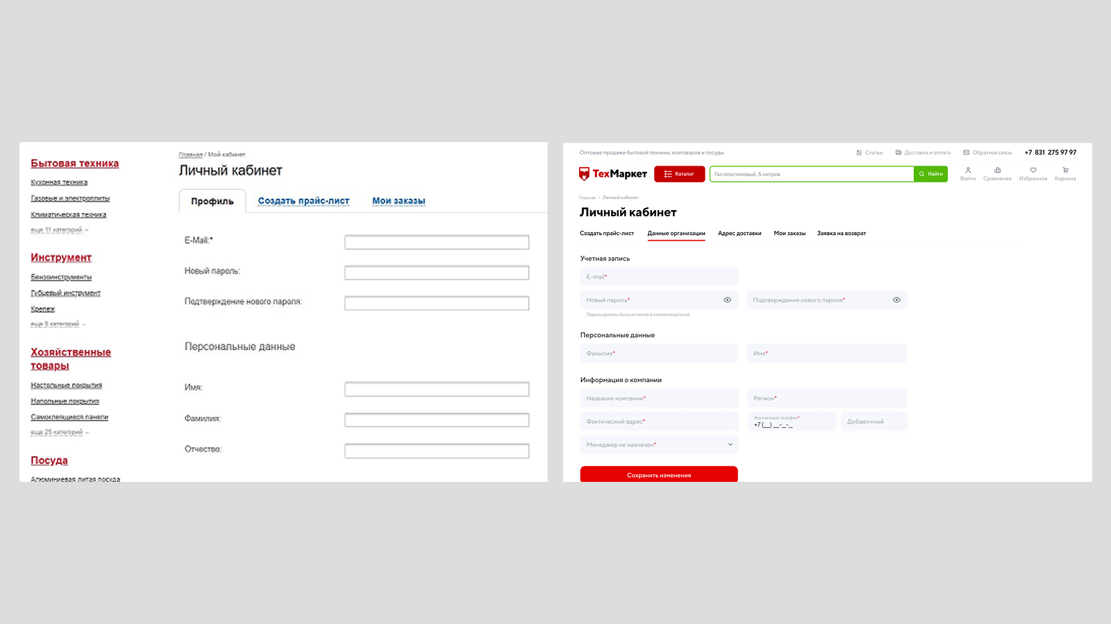 Каталог до и после модернизации сайта