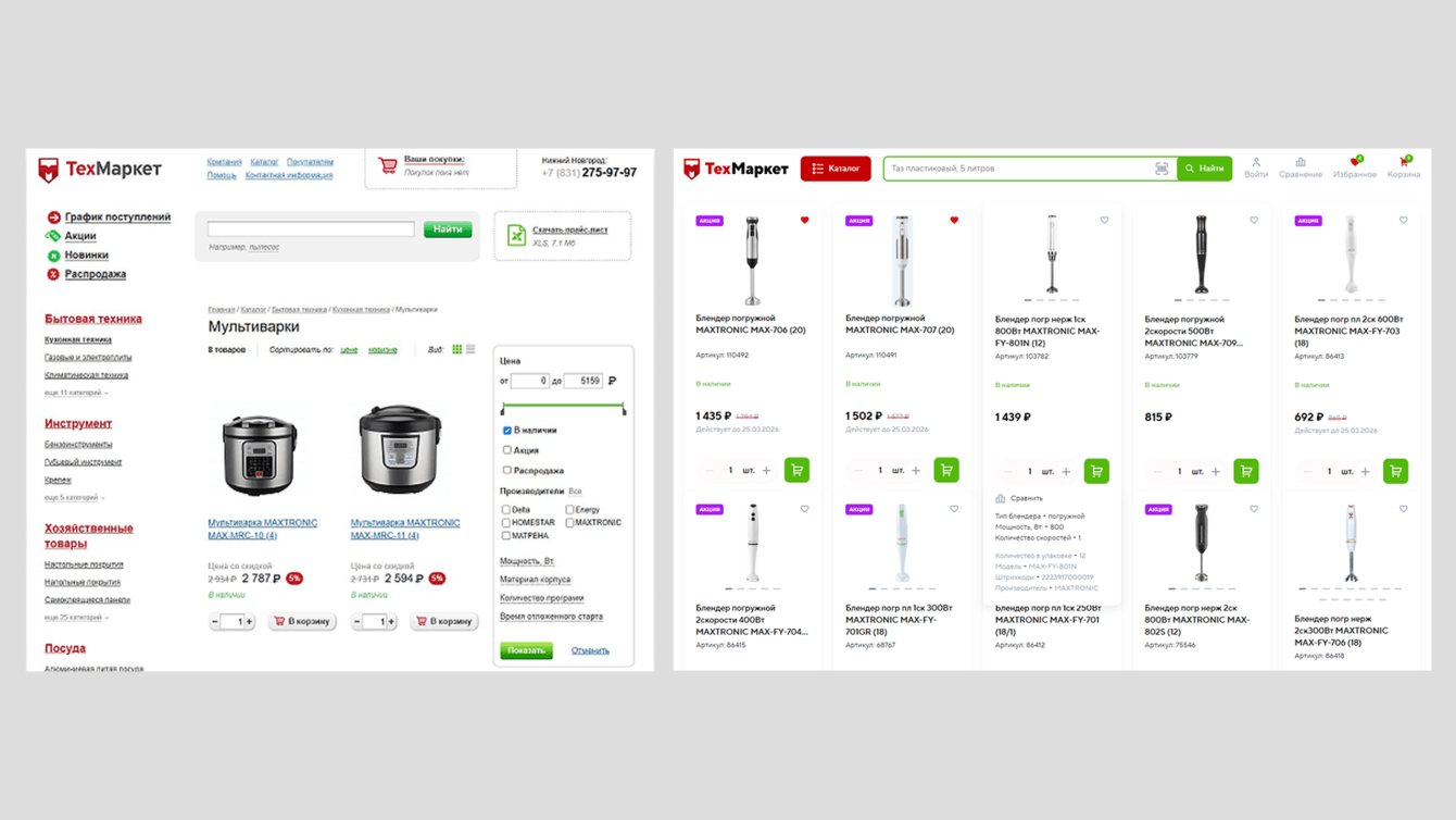Когда компания работает с оборотом более 1,5 млрд рублей в год, любое изменение в интернет-магазине несет риск. Но для ООО «Техмаркет» — крупного оптового поставщика бытовой техники, хозтоваров и посуды настала пора меняться: морально устаревший сайт на Битриксе сдерживал рост бизнеса.