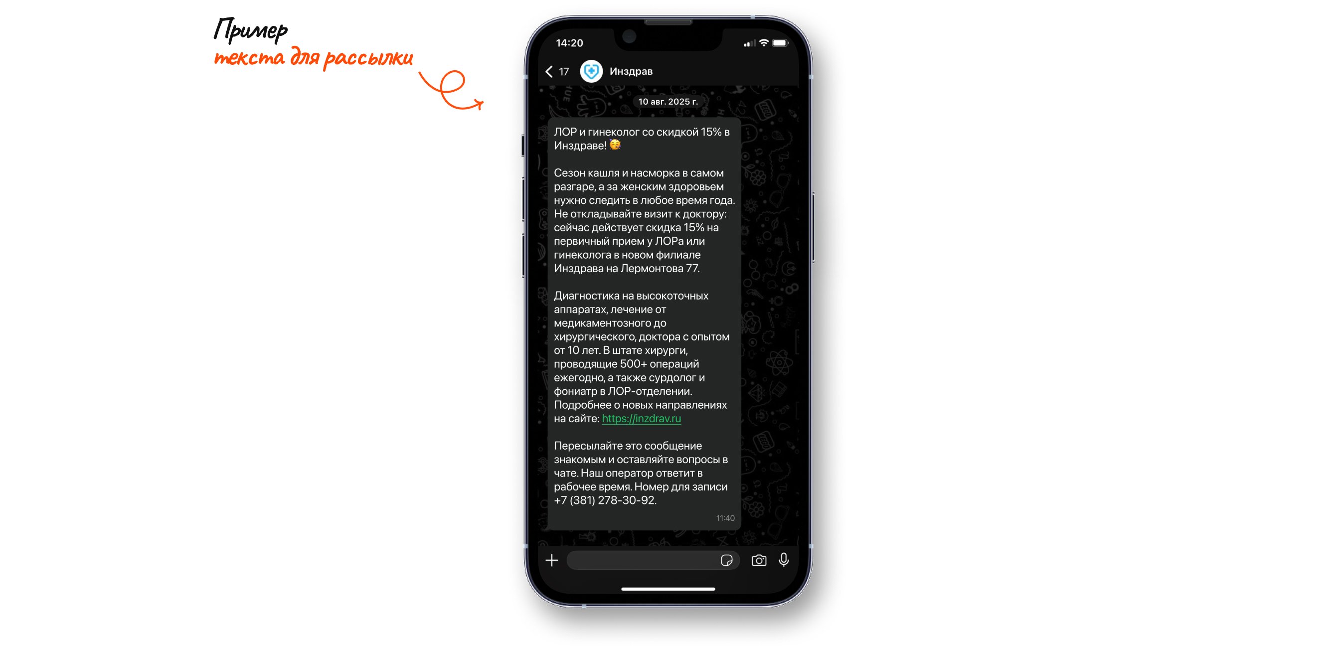 Что мы сделали для Инздрава: проводим в мессенджерах закрытые акции и отправляем персональные предложения клиентам.