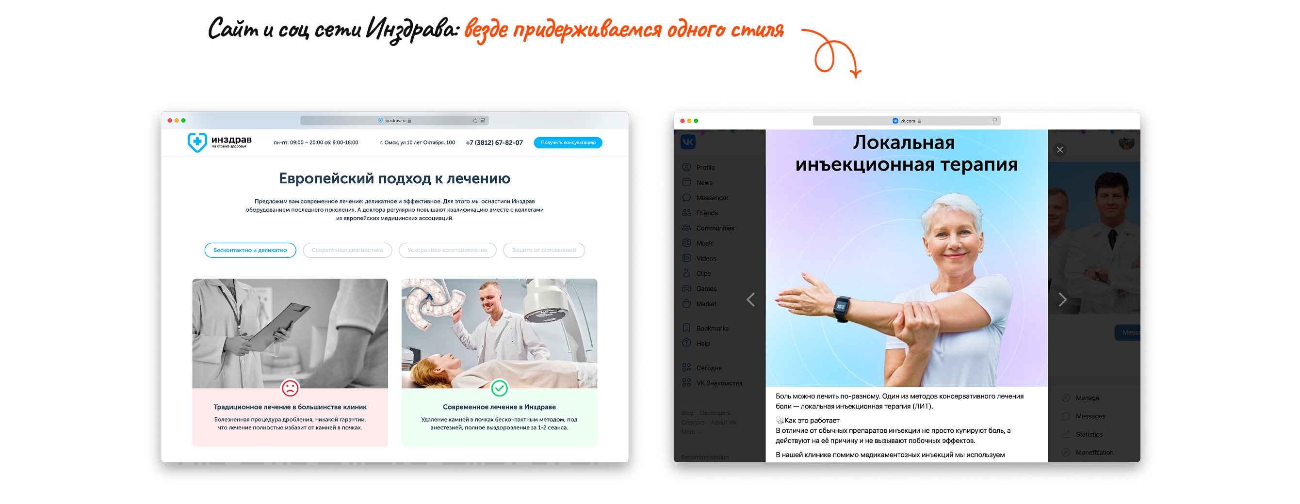 Коммуникация с клиентами должна быть консистентной: если в соцсетях мы транслируем этичность и заботу о пациентах, то таким же должно быть и общение с медперсоналом, рекламные ролики, диалоги в колл-центре.