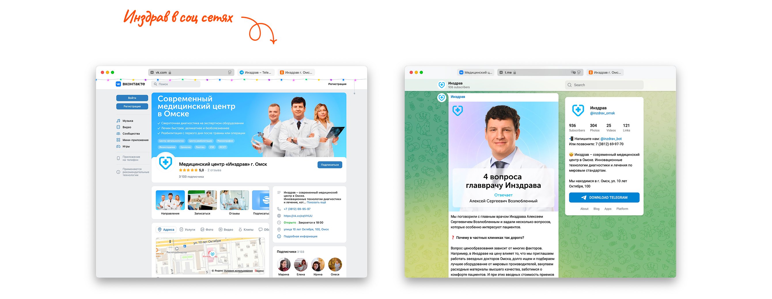Мы сразу завели страницы клиники в соцсетях, упор делали на Вконтакте и Одноклассники — у клиники много направлений для людей постарше — все, что касается замены суставов и реабилитации.