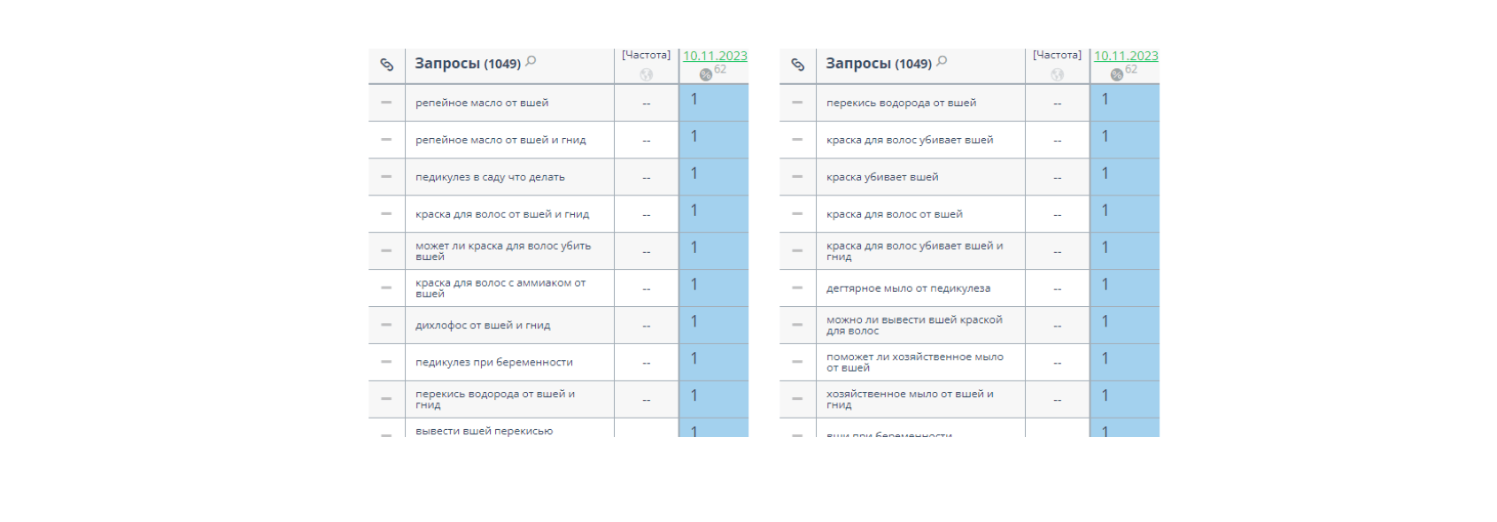 - Запрос «вычесывание вшей» - 1 позиция в Яндекс