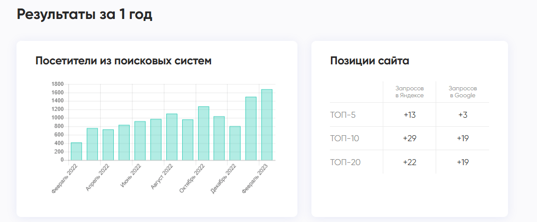 Позиции сайта: Улучшились позиции сайта в поисковых системах Яндекс и Google.