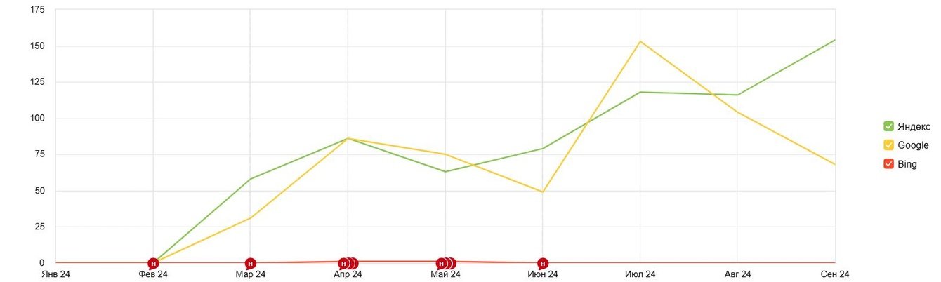Проведя анализ конкурентов, стало очевидно что наш сайт недополучает существенное количество трафика. Так же важно было понять что именно даёт конкурентам такой буст по позициям и трафику.