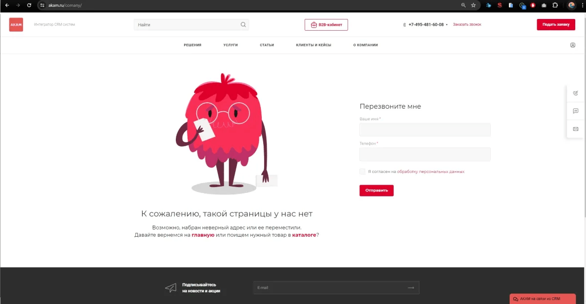 Разработали новый дизайн страницы 404, который подходит под пожелания клиента и предлагает полезную информацию пользователям.