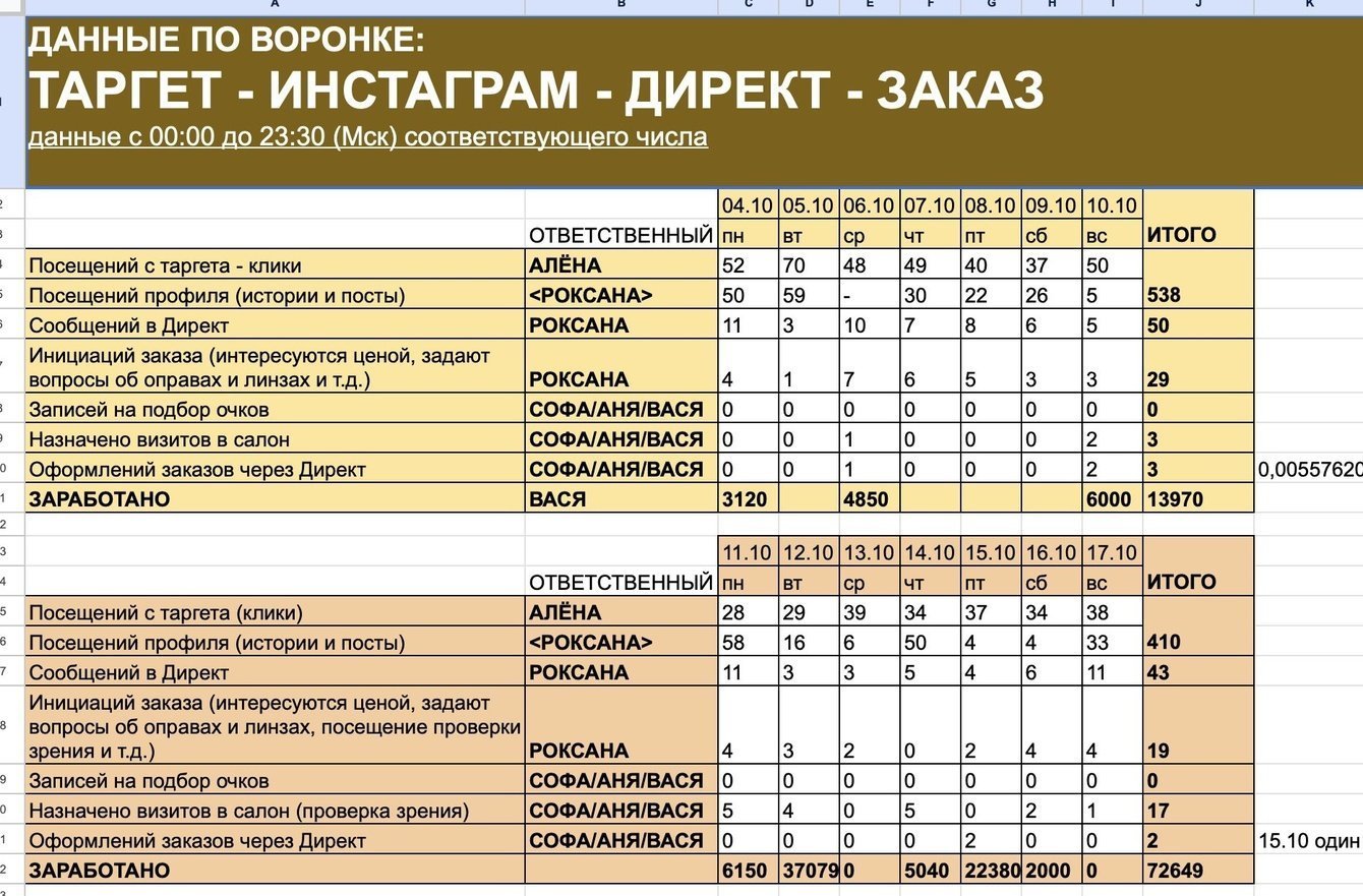 1) создали excel табличку с оцифровкой всех этапов воронки (как временную замену CRM системы)