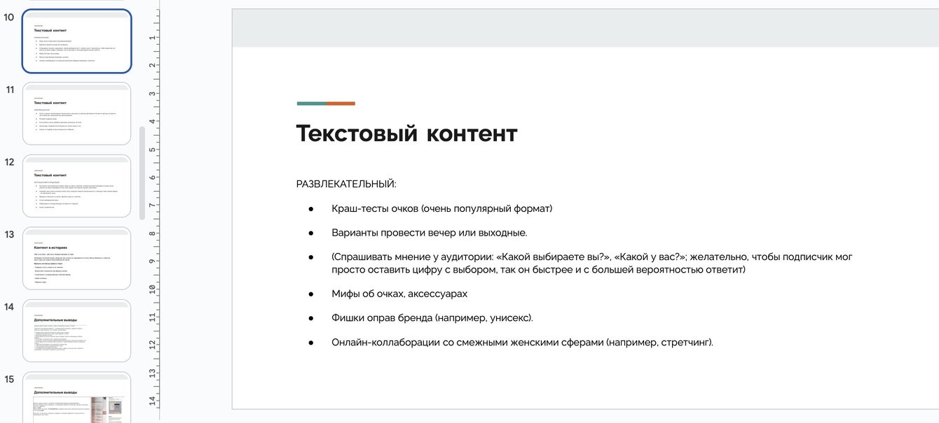 2) исключительно "атмосферный" контент, не раскрывающий преимущества оправ и линз бренда и не мотивирующий приобрести оптику