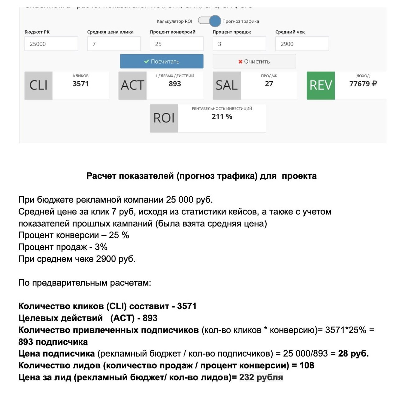 Для стратегии продвижения, помимо рекламных офферов, разработали медиаплан. При рекламном бюджете 25 тысяч рублей без НДС поставили цель получать лиды, то есть записи на проверку зрения, по 232 рубля.