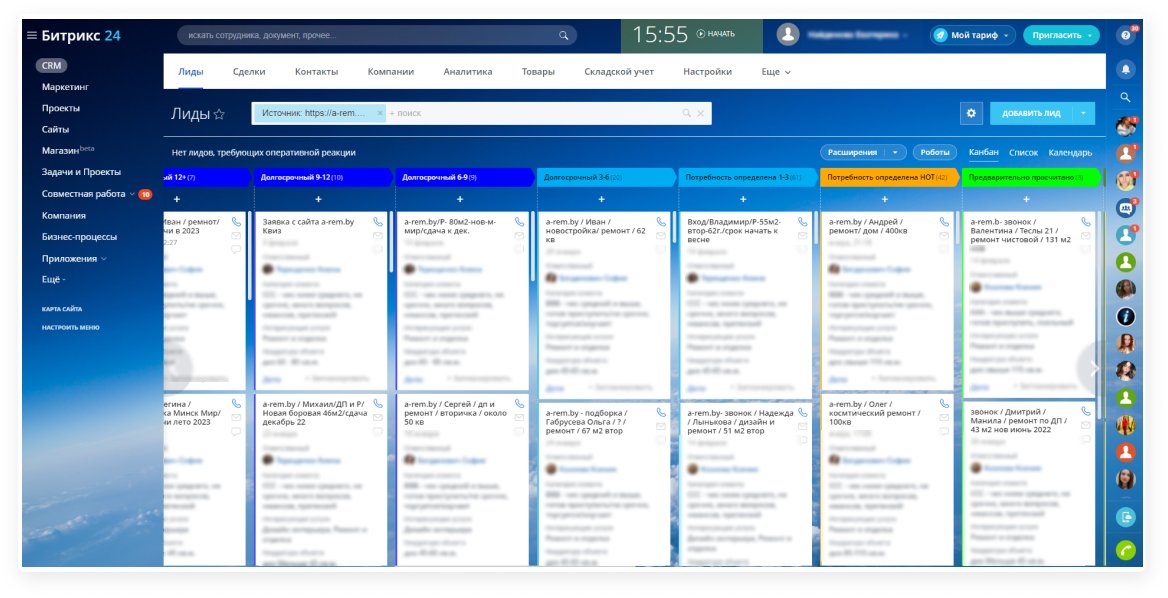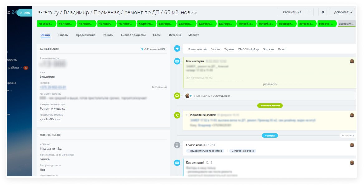 Дополнительно настроили этапы воронки и логику работы с лидами. В результате: