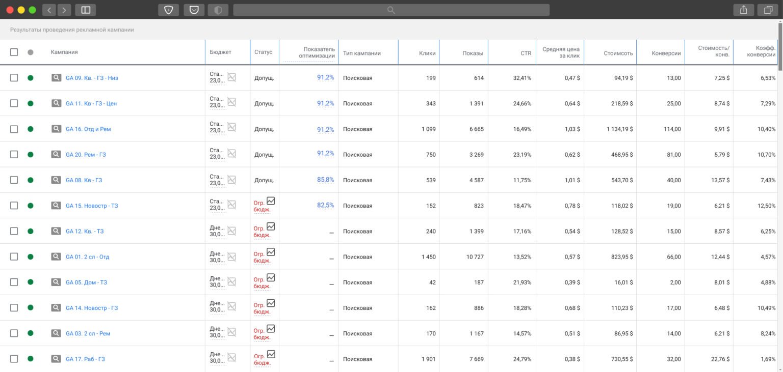 - постоянная оптимизация рекламных кампаний и сайта;