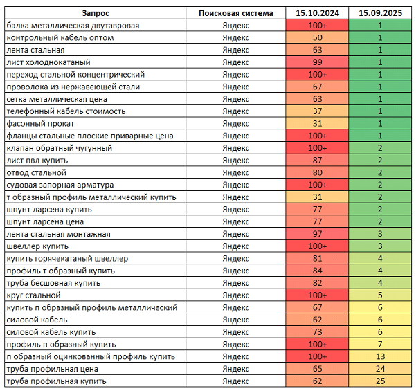 С мая 2025 мы сместили акцент на Google. Изначально индексация в этой системе шла медленно, а большая часть запросов находилась на 100+ позиции.
