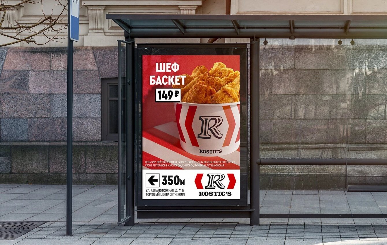 ROSTIC’S провел ребрендинг с фокусом на ренейминг и адаптацией фирменного стиля в максимально преемственном варианте. Основные продуктовые атрибуты, бенефиты, ценности и культовые локации сохранились, а позиционирование ROSTIC’S — это KFC. Это объясняет весь комплекс решений для обновленного бренда: от стилеобразующих элементов и гайдлайнов до системы лояльности и промо материалов.