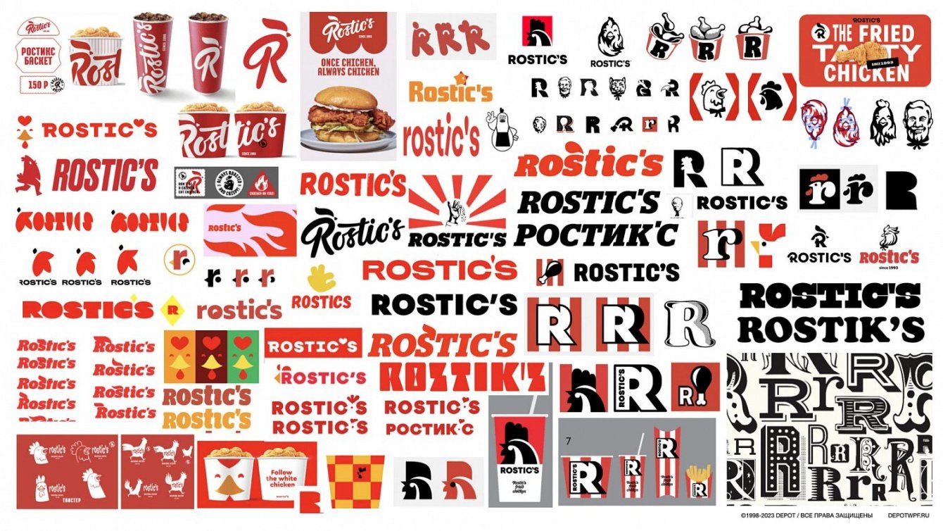 В прошлом году мы наблюдали за несколькими очень быстрыми ребрендингами и учились на этих примерах. Формулировали разные гипотезы, проводили опросы, тестировали и выбирали из нескольких сотен концепций. Остановили выбор на том направлении, которое даёт нам максимальный потенциал с точки зрения узнаваемости и преемственности. Мы верим, что такая трансформация выведет бренд на новый уровень, и это обязательно оценит наша аудитория. В конце октября бренд зарегистрировал эмблему с изображением курицы в черном цвете. В нынешнем воплощении логотипа курицу сменила заглавная буква R, при этом дизайнеры оставили рамку в оттенках красного. Красный стал немного теплее, чтобы больше подходить категории общественного питания. В целом фирменный стиль сохранил красно-бело-черную цветовую гамму. Особое внимание дизайнеры уделили заглавной букве «R». В её написании присутствует стилистика оригинальных букв, которые использовались в KFC.