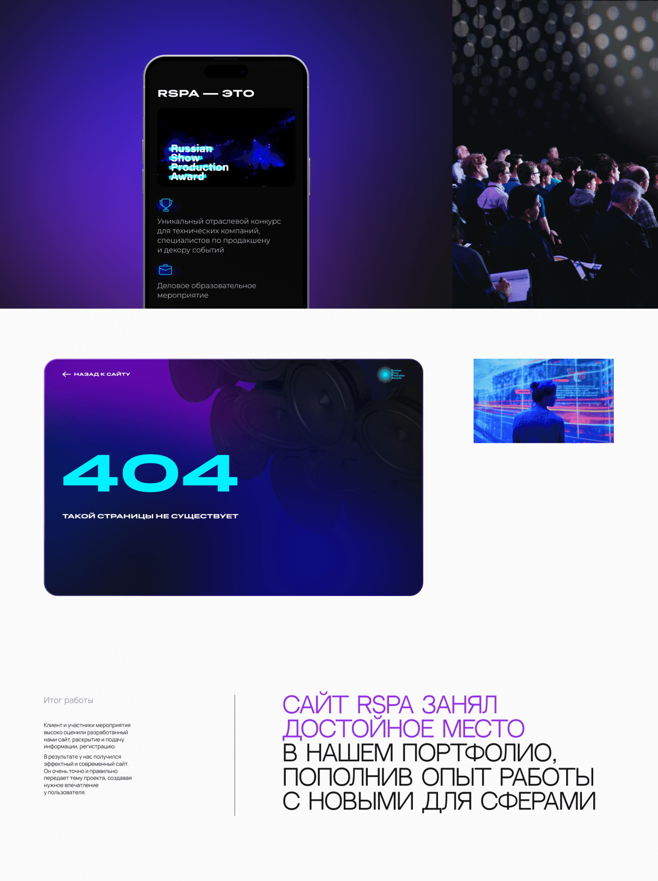 Клиент и участники мероприятия высоко оценили разработанный нами сайт, раскрытие и подачу информации, регистрацию.
