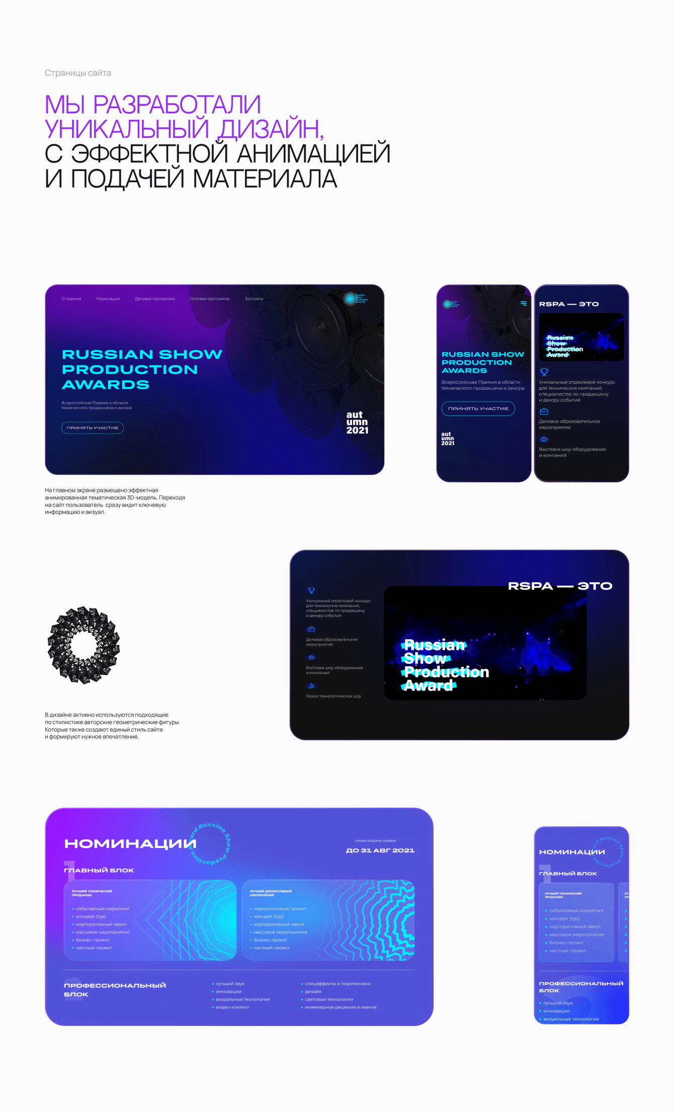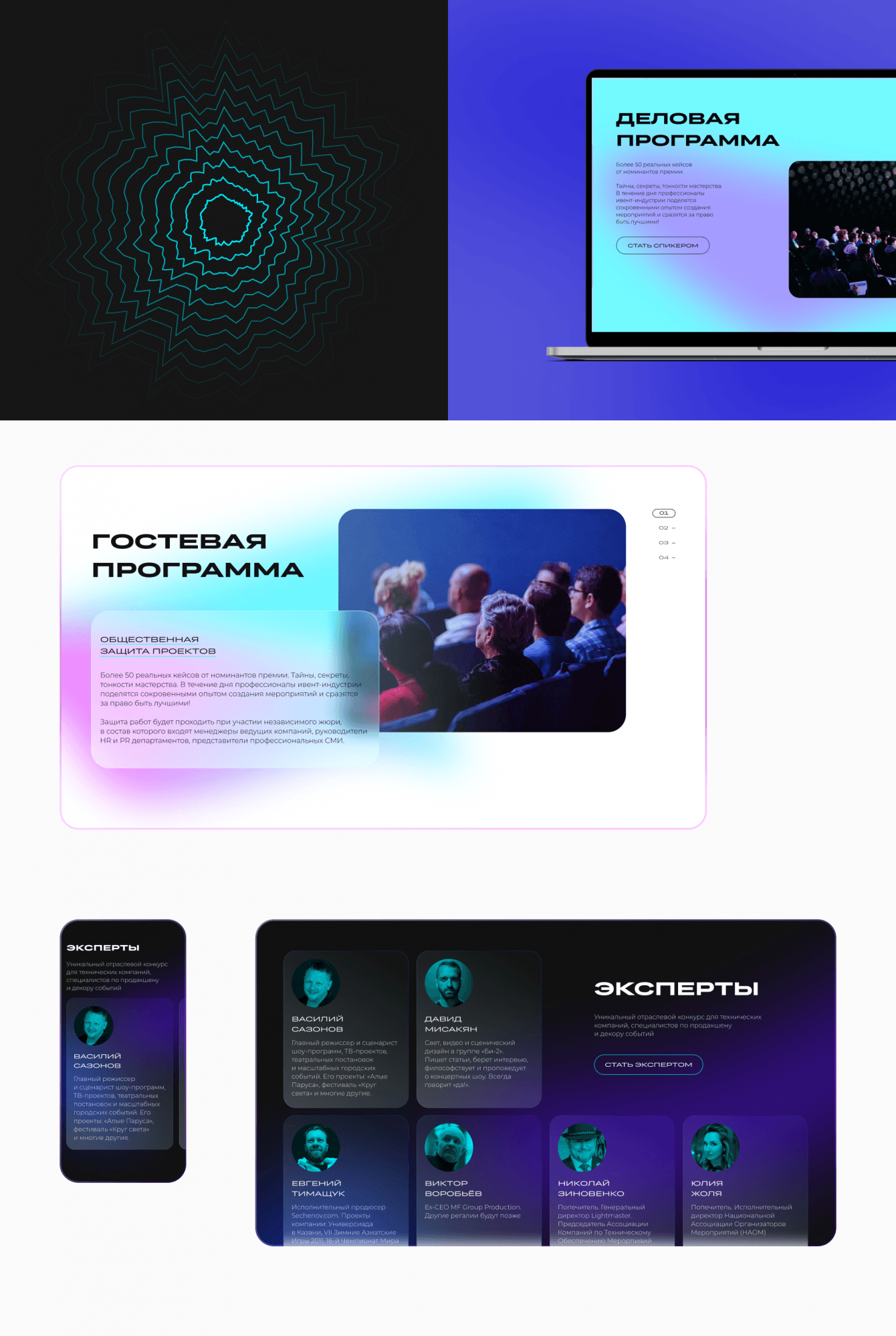 Сайт должен выглядит современно и технологично, передавать тематику события через специально разработанный стиль.