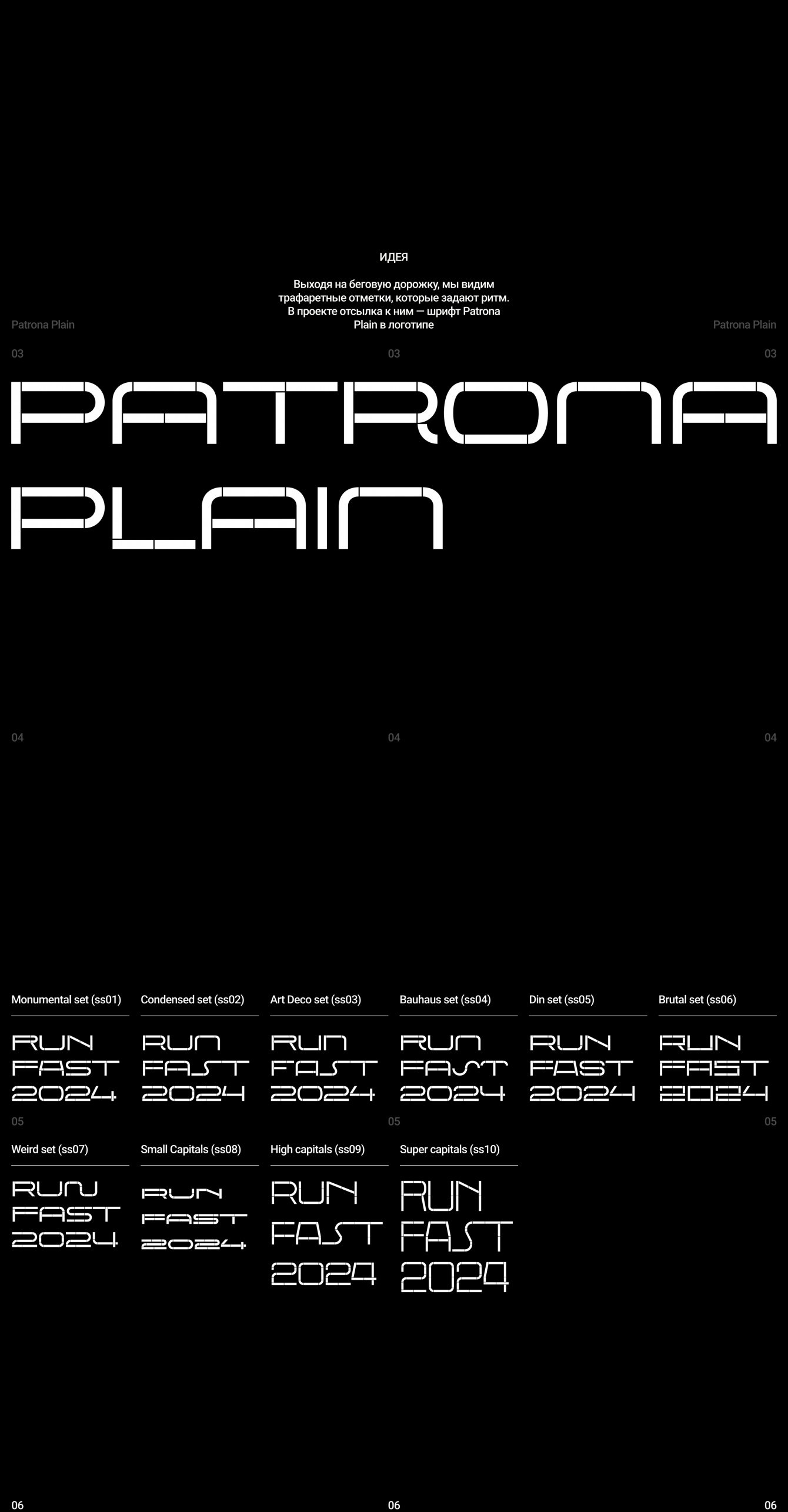 • Шрифт: Использован Patrona Plain, который идеально передает атмосферу трафаретного стиля. Этот выбор делает логотип узнаваемым и функциональным, особенно для динамичных и спортивных брендов.