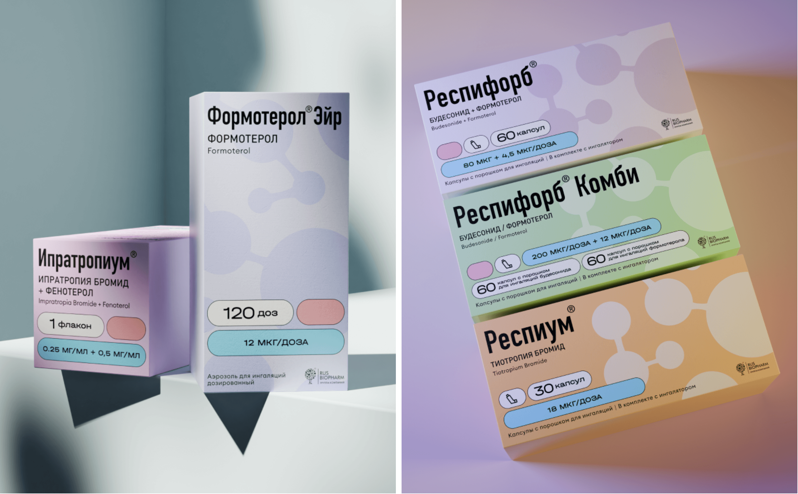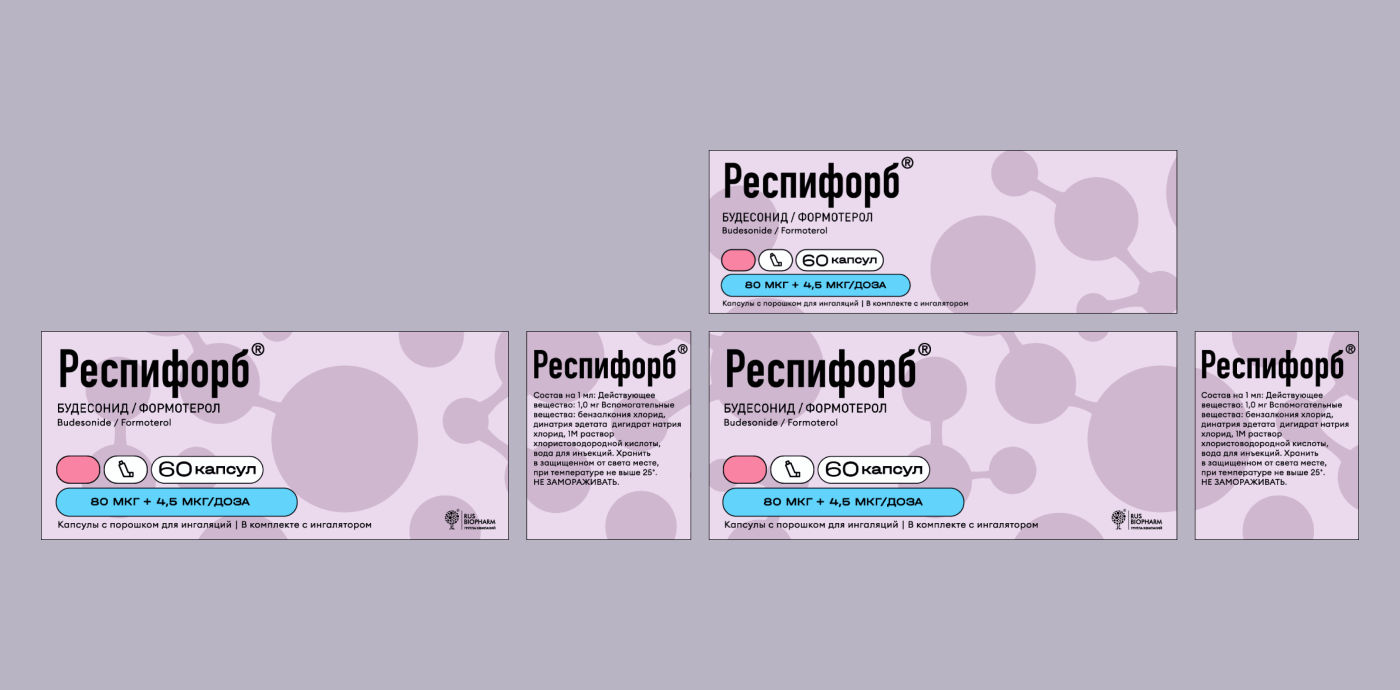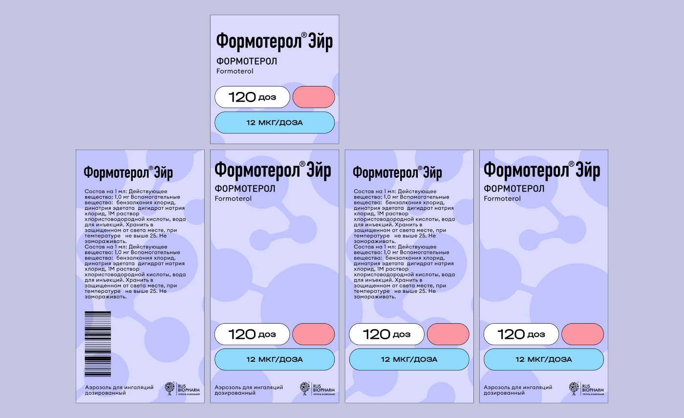 Мы провели интервью с клиентом. На основе полученных данных, собрали таблицу препаратов, глобальную схему дифференциации (внутри пульмонологии RUS BioPharm), аналитическую сводку по конкурентам. Далее погрузились в графические редакторы. Перед командой не стояла задача «предложить «готовый дизайн».