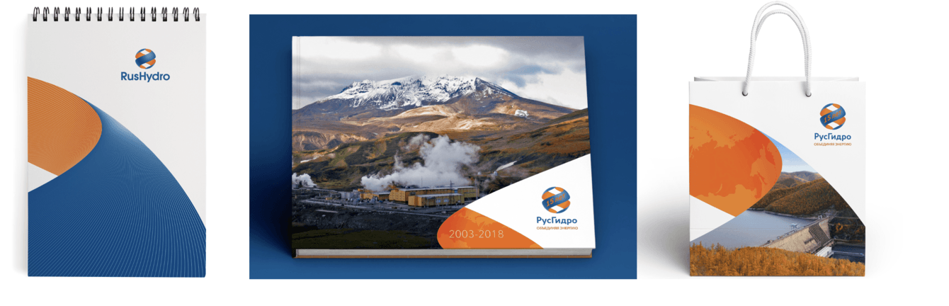 Помимо оформления юбилея было реализовано несколько проектов в рамках 15 летия и других активностей РусГидро. Была проведена корректировка 15 брендбуков дочерних и подконтрольных организаций. Разработан фирменный стиль выставки посвященной 100 летию ГОЭРЛО