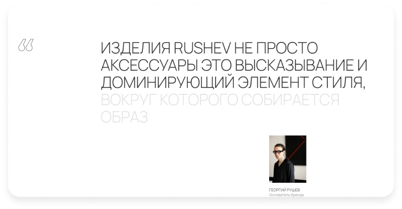 Бренд RUSHEV отличают дерзкий и яркий характер. Каждое украшение сочетает символизм, уникальность и простоту дизайна. В индустрии моды аксессуары должны подстраиваться под образ. Они отражают как настроение, так и личность целиком. Поэтому все изделия изготавливаются вручную, ограниченным тиражом, а коллекция дополняется раз в 2-3 месяца новыми хитами.