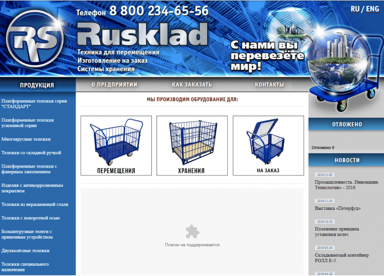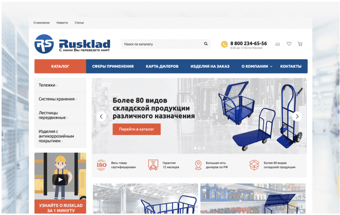 1. История нашего сотрудничества началась в 2016 году со старенького сайта с небольшим трафиком, а клиент пришел с запросом на привлечение трафика из поисковых систем. Сегодня Русклад — один из лидирующих производителей складского оборудования в России.